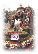 การประดับไปด้วยผลไม้นานาชนิด มีการประกวดผลไม้จากสวนต่าง ๆ เช่น ทุเรียน