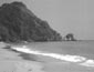 หน้าผาสูงใหญ่ อยู่ตรงข้ามกับเกาะนมสาว ริมชายหาดมีต้นมะพร้าวขึ้น