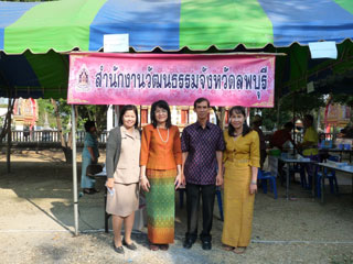 โครงการวัฒนธรรมไทยสายใยชุมชน ประจำปีงบประมาณ ๒๕๕๔ (กิจกรรมเผยแพร่ภูมิปัญญาการทำขนมไทย) เมื่อวันที่ ๑๖ มีนาคม ๒๕๕๔ ณ โรงเรียนศูนย์การบินทหารบกอุปถัมภ์ ตำบลเขาพระงาม อำเภอเมืองลพบุรี จังหวัดลพบุรี ดูรายละเอียด |