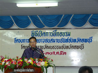 จัดโครงการค่ายเยาวชนสมานฉันท์จังหวัดลพบุรี ประจำปี ๒๕๕๓ เมื่อวันที่ ๒๙ - ๓๑ กรกฎาคม ๒๕๕๓ ณ ห้องประชุมกองพันปฏิบัติการจิตวิทยา ศูนย์สงครามพิเศษ อำเภอเมือง จังหวัดลพบุรี โดยมีนักเรียน เยาวชน จากศาสนาพุธ ศาสนาคริสตร์ และศาสนาอิสลาม เข้าร่วมกิจกรรม จำนวน ๑๐๐ คน มีวัตถุประสงค์เพื่อนำมิติทางศาสนามาสร้างสันติภาพให้เกิดความสมานฉันท์และความเข้มแข็ง ในสังคมไทย โดยมีนายวรเทพ ปิสาวงษ์ วัฒนธรรมจังหวัดลพบุรี เป็นประธานในพิธีเปิดการอบรม |
