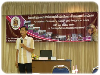 | สำนักงานวัฒนธรรมจังหวัดลพบุรี จัดโครงการประชุมระดมความคิด เพื่อกำหนดพื้นที่ โครงการวัฒนธรรมไทยสายใยชุมชนในการนำเสนอ "๙ เสน่ห์มรดกวัฒนธรรม ๘ วิถีไทย" ประจำปีงบประมาณ ๒๕๕๔ เมื่อวันที่ ๒๙ เมษายน ๒๕๕๔ ณ ห้องประชุมสำนักงานวัฒนธรรม จังหวัดลพบุรี โดยมีนายพจน์ สีเข้ม วัฒนธรรมจังหวัดลพบุรี เป็นประธานในพิธีเปิดโครงการ มีผู้เข้าร่วมประชุม ประธาน และคณะกรรมการบริหารโครงการวัฒนธรรมไทยสายใยชุมชน จำนวน ๕๐ คน เพื่อระดมความคิดในการจัดทำแผนที่ทางวัฒนธรรม และรูปแบบการ นำเสนอเอกลักษณ์ภูมิปัญญาของท้องถิ่นในจังหวัดลพบุรี |