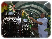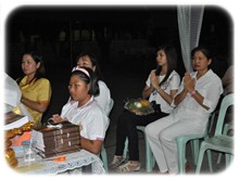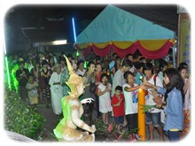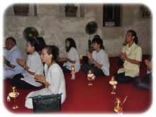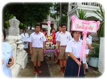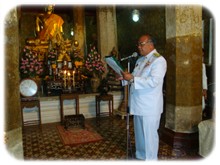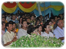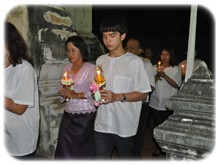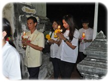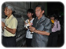 ณ วัดกวิศราราม ในภาคค่ำจัดพิธีเวียนเทียนรอบพระอุโบสถ ณ วัดเสาธงทอง