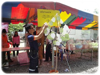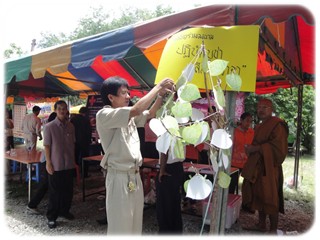 ส่งเสริมอาชีพผลิตภัณฑ์สานตะกร้าจากเชือกปอฟาง และรณรงค์ปฏิบัติบูชา "สัมมาวาจา" โดย