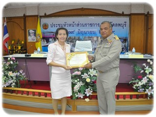 โดยมีผู้ว่าราชการจังหวัดลพบุรี นายฉัตรชัย พรหมเลิศ เป็นผู้มอบโล่ และประกาศเกียรติคุณบัตร แก่ผู้ทำคุณประโยชน์