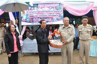 | สำนักงานวัฒนธรรมจังหวัดลพบุรี ร่วมกิจกรรมโครงการผู้ว่าลพบุรีฯ พบประชาชน (หน่วยบำบัดทุกข์ บำรุงสุข สร้างรอยยิ้มให้ประชาชน) ปี ๒๕๕๔ เมื่อวันที่ ๑๗ มีนาคม ๒๕๕๔ ณ องค์การบริหารส่วนตำบลบัวชุม อำเภอชัยบาดาล จังหวัดลพบุรี เพื่อนำบริการด้านต่าง ๆ ของหน่วยงาน ให้บริการประชาชนในพื้นที่ โดยสำนักงานวัฒนธรรมจังหวัดลพบุรีได้ให้บริการข้อมูล ข่าวสาร ของหน่วยงาน ด้านศาสนา ศิลปะและวัฒนธรรม มีการถ่ายทอดภูมิปัญญาชาวบ้านของวัฒนธรรมไทย สายใยชุมชนตำบลท่ามะนาว และตำบลลำนารายณ์ มีกิจกรรมสาธิตการร้อยลูกปัด การสานปลาตะเพียน การทำขนมทองม้วนกรอบ และจำหน่ายผลิตภัณฑ์จากสายใยชุมชน ศิลปะการแสดงกลองยาว จากเยาวชนที่ผ่านการอบรมองค์ความรู้ด้านการตีกลองยาวของอำเภอชัยบาดาล จังหวัดลพบุรี |