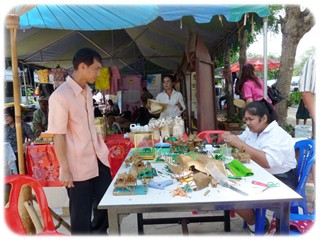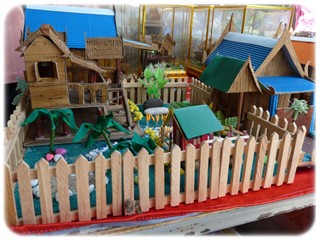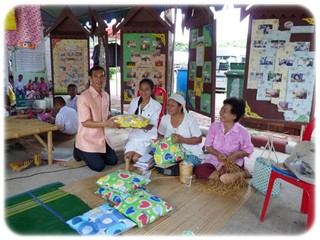 ส่งเสริมอาชีพผลิตภัณฑ์สานกระเป๋าจากเชือกปอฟาง การเย็บหมอนผ้าลายไทย การทำบ้านทรงไทย