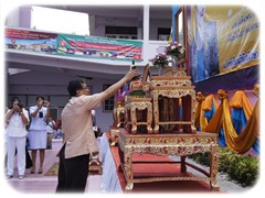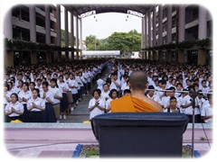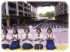 การสวดมนต์หมู่สรรเสริญพระรัตนตรัยทำนองสรภัญญะ การรำถวายพระพร การแสดงดนตรีส่งเสริมคุณธรรม จริยธรรม