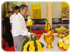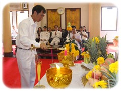 ณ วัดเสาธงทอง ตำบลท่าหิน อำเภอเมืองลพบุรี จังหวัดลพบุรี โดยเป็นการสวดอัญเชิญเทวดานพเคราะห์ทั้ง ๙ วัน เพื่อเฉลิมพระเกียรติ