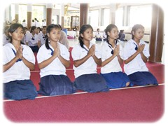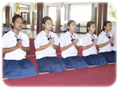 ด้วยการสวดมนต์ไหว้พระ และนำหลักธรรมคำสอนทางพระพุทธศาสนาไปประพฤติ ปฏิบัติ