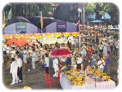โดยมีการจัดกิจกรรมทำบุญตักบาตร แสดงธรรม แสดงตนเป็นพุทธมามกะ จัดแสดงโต๊ะหมู่บูชา จัดแสดง