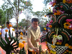 | ผู้ว่าฯ จ.มุกดาหาร สำนักงานวัฒนธรรม และประชาชนชาวจังหวัดมุกดาหารทุกหมู่เหล่า วางพุ่มดอกไม้สดบำเพ็ญกุศลถวาย เนื่องในวันคล้ายวันพระราชสมภพสมเด็จพระศรีนครินทราบรมราชชนนี ณ บริเวณฐานปฏิบัติการวรพัฒน์ อุทยานสมเด็จย่า อำเภอดอนตาล จังหวัดมุกดาหาร วันพุธที่ ๒๑ ตุลาคม ๒๕๕๒ | |||