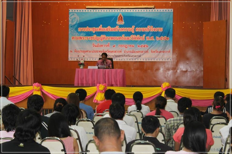 การประชุมสร้างความเข้าใจแนวทางการปฏิบัติงานของสภาวัฒนธรรมจังหวัดนครสวรรค์ ตามพระราชบัญญัติวัฒนธรรมแห่งชาติ พ.ศ.2553 และกฎกระทรวงที่เกี่ยวข้อง ในวันที่ 9 กรกฎาคม พ.ศ.2556 ณ โรงแรมบ้านสวนรีสอร์ท อำเภอเมือง จังหวัดนครสวรรค์ โดยมีนายชัยโรจน์ มีแดง ผู้ว่าราชการจังหวัดนครสวรรค์ เป็นประธานในการเปิดพิธีและ นายสุจริต บัวพิมพ์ ผู้เชี่ยวชาญพิเศษด้านศิลปวัฒนธรรม กระทรวงวัฒนธรรมเป็นผู้บรรยายพิเศษ >>>อ่านต่อ |