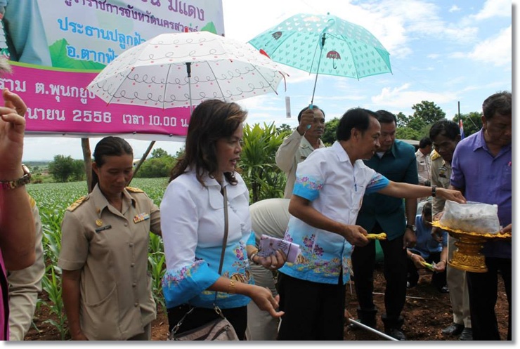 พิธีปลูกฝ้ายทอดจุลกฐิน วันศุกร์ที่ 21 มิถุนายน 2556 บริเวณพื้นที่เพาะปลูกวัดไตรคีรี อำเภอตากฟ้า จังหวัดนครสวรรค์