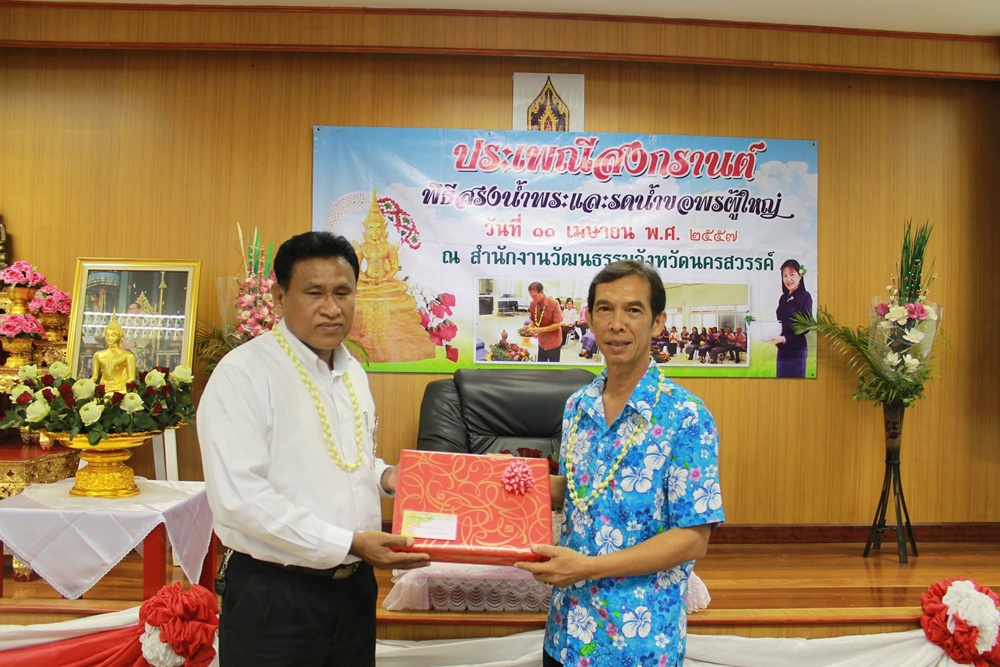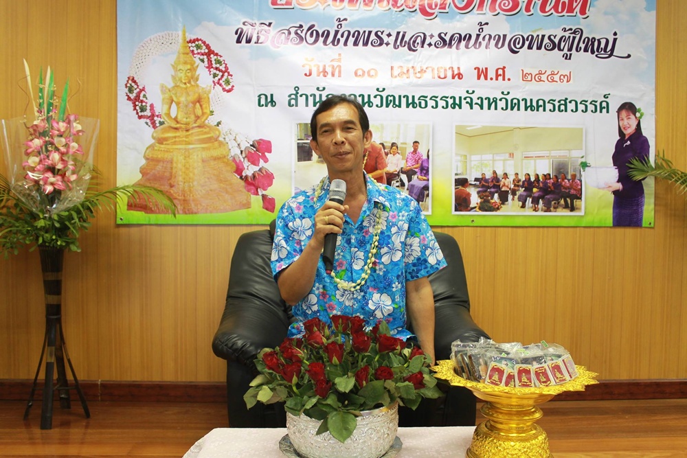 สำนักงานวัฒนธรรมจังหวัดนครสวรรค์ จัดพิธีสรงน้ำพระและรดน้ำขอพรท่านพจน์ สีเข้ม วัฒนธรรมจังหวัดนครสวรรค์ ในวันที่ ๑๑ เมษายน ๒๕๕๗
