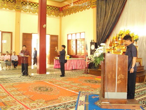 ด้วยการสวดมนต์ระลึกถึงพระพุทธคุณ พระธรรมคุณ และพระสังฆคุณ โดยนายเชิดศักดิ์ ชูศรี ผู้ว่าราชการจังหวัดสมุทรปราการ
