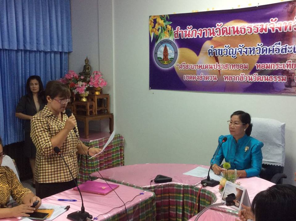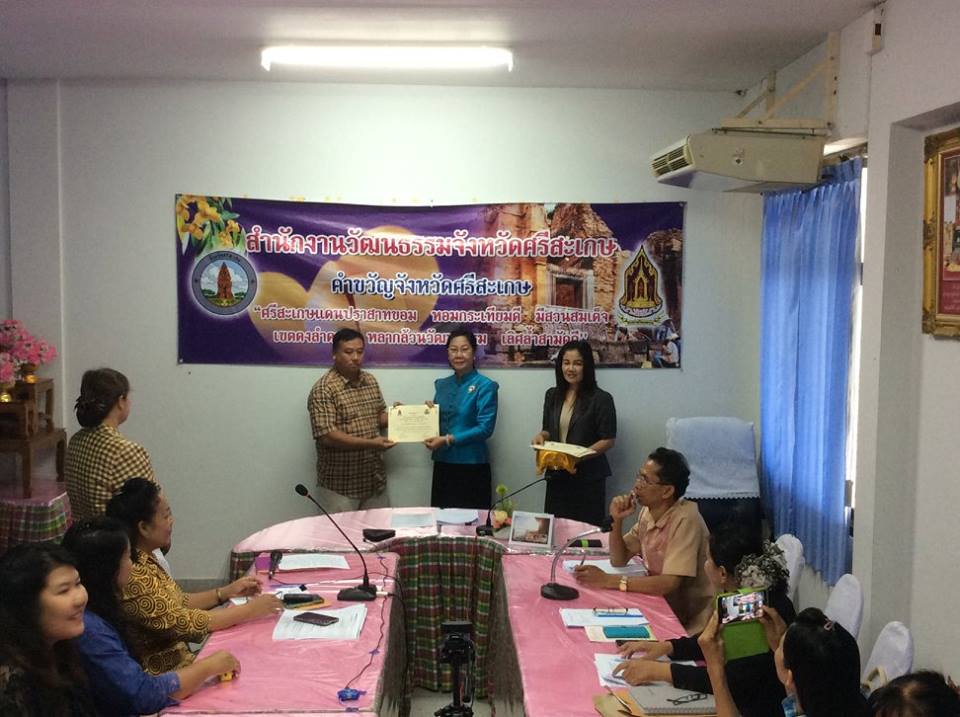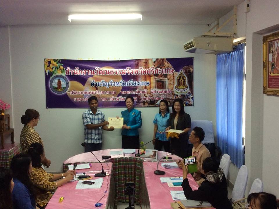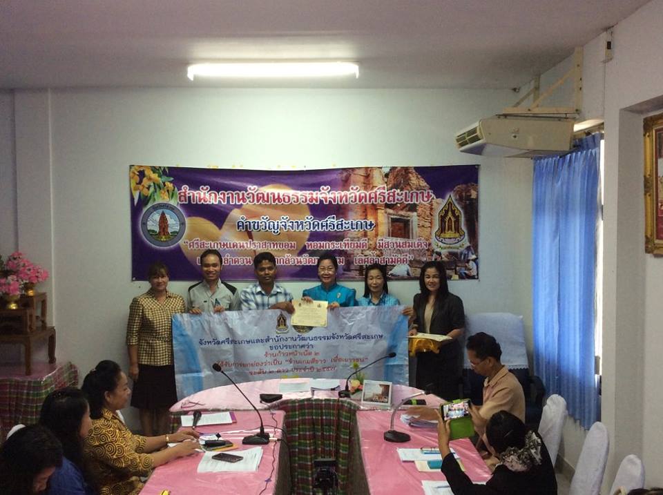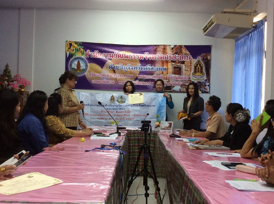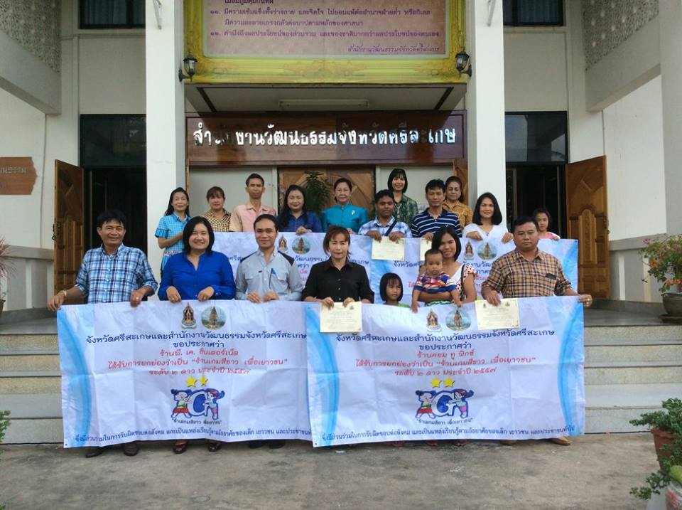 พิธีมอบใบประกาศและตราสัญลักษณ์ร้านเกมสีขาว เมื่อวันที่ ๓๑ ตุลาคม ๒๕๕๗ นางอุดมลักษณ์ ประชุมรักษ์ วัฒนธรรมจังหวัดศรีสะเกษเป็นประธานมอบใบประกาศและตราสัญลักษณ์ร้านเกมสีขาวให้แก่ร้านเกมที่ส่งเข้าประกวดและผ่านการประเมิน โดยมีนาง วัชรี ธนบูลย์พิพัฒน์ ผู้อำนวยการกลุ่มยุทธศาสตร์และเฝ้าระวังทางวัฒนธรรมเป็นผู้กล่าวรายงาน