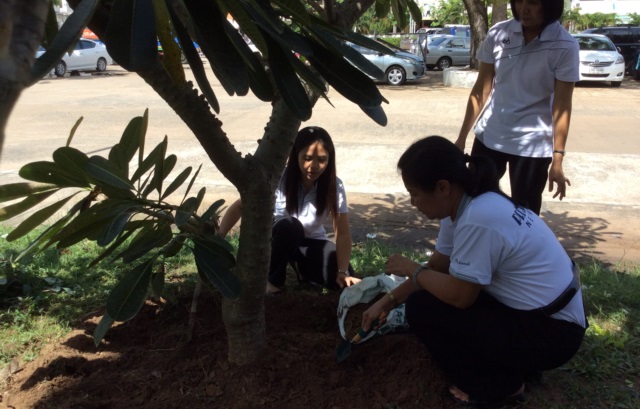 ต้นไม้ด้วยการพรวนดินใส่ปุ๋ยแผ้วถางวัชพืชปลูกซ่อมต้นไม้และรดน้ำพราวดินในพื้นที่ที่ได้ปลูกต้นไม้ไว้รอบ