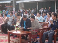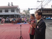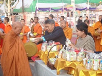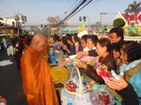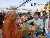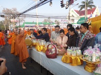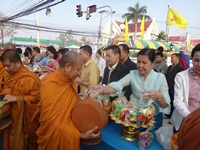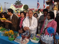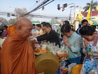 พร้อมคณะ ข้าราชการ พ่อค้า ประชาชนชาว จ.ศรีสะเกษจำนวนมาก ร่วมกันประกอบพิธีทำบุญตักบาตรเนื่องในวันขึ้นปีใหม่
