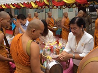 ข้าราชการสำนักงานวัฒนธรรมจังหวัดศรีสะเกษร่วมพิธีงานสืบสานบุญประเพณี ตักบาตรเทโว ประจำปี2557 ณ ลานพระอารามหลวงวัดเจียงอีศรีมงคลวราราม อำเภอเมืองศรีสะเกษ จังหวัดศรีสะเกษโดยมีท่านผู้ว่าราชการจังหวัดศรีสะเกษเป็นประธานนำหัวหน้าส่วนราชการ ข้าราชการพ่อค้าประชาชน อุบาสกอุบาสิกา ร่วมกันใส่บาตร |
