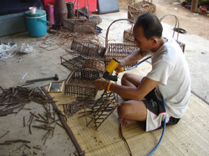 นางเหรียญทอง สุทธปัญญา สามารถนำเอาเครือเถาวัลย์ที่มีอยู่ในท้องถิ่น มาประดิษฐ์เป็นเครื่องประดับตกแต่งได้อย่างสวยงาม เช่น ทำแจกัน ตะกร้า กระเช้าผลไม้ จำหน่ายสร้างรายได้ให้แก่ครอบครัว และนอกจากจะจำหน่ายในประเทศไทยแล้ว ยังสามารถส่งออกไปจำหน่ายยังต่างประเทศอีกด้วย