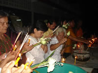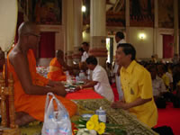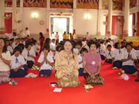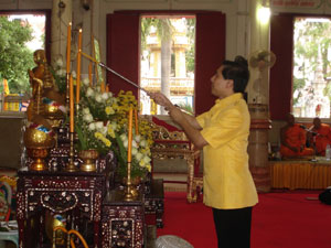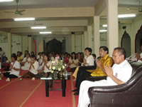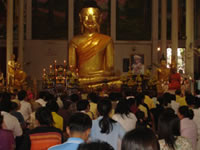 ![]() ด้วยคณะสงฆ์จังหวัดศรีสะเกษ โดยพระเทพวรมุนี เจ้าคณะจังหวัดศรีสะเกษ สำนักงานวัฒนธรรม จังหวัดศรีสะเกษ และสำนักงานพระพุทธศาสนาจังหวัดศรีสะเกษ ร่วมกับพุทธศาสนิกชนชาวศรีสะเกษ ได้ร่วมกันบำเพ็ญกุศล ทำบุญ ตักบาตร รักษาศีล เวียนเทียน และปฏิบัติธรรมที่วัดอย่างพร้อมเพรียง ในวันที่ ๓ มีนาคม ๒๕๕๐ ในการนี้ นายไมตรี อินทุสุต รองผู้ว่าราชการจังหวัดศรีสะเกษ พร้อมด้วย นางพวงคำ ทองทั่ว วัฒนธรรมจังหวัดศรีสะเกษ นายชยพล พงษ์สีดา ผู้อำนวยการสำนักงานพระพุทธศาสนาจังหวัดศรีสะเกษ ได้นำหัวหน้าส่วนราชการ ภาคเอกชน ประชาชน ร่วมทำบุญตักบาตรที่วัดมหาพุทธาราม และเวียนเทียน ที่วัดเจียงอีศรีมงคลวราราม