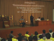 จั่นเงิน ผู้ตรวจราชการกระทรวงวัฒนธรรม เป็นวิทยากรในการประชุม-สัมมนาในครั้งนี้ ซึ่งผู้เข้าร่วมประชุมประกอบด้วย ครูดนตรี ครูภาษาไทย